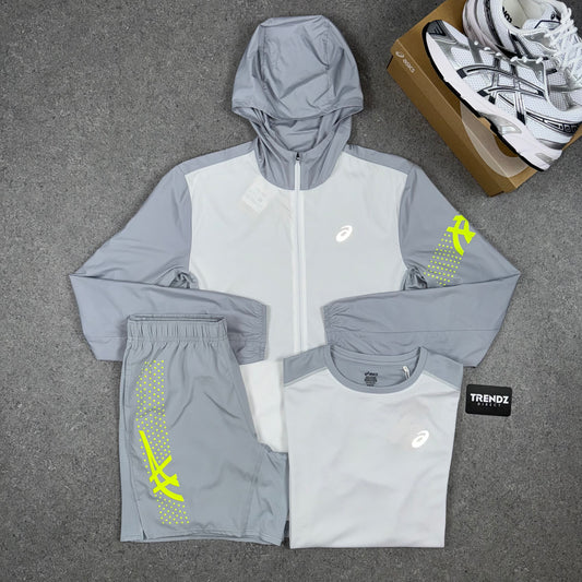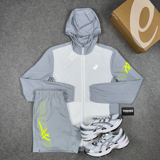 ASICS ICON WINDBREAKER JACKET & SHORTS SET - GREY/VOLT