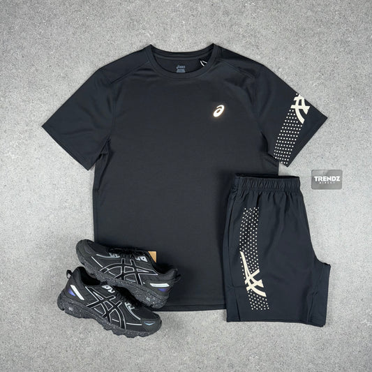 ASICS ICON WINDBREAKER, T-SHIRT & SHORTS SET - BLACK