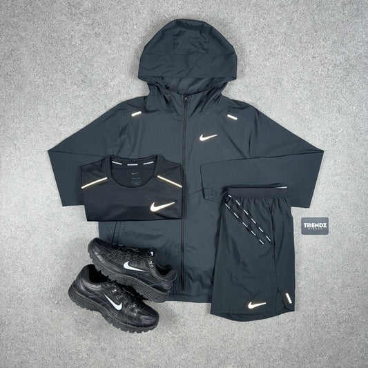 NIKE UV WINDBREAKER, MILER & FLEX SHORTS SET - BLACK