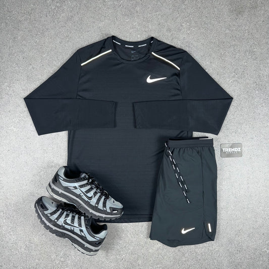 NIKE LONGSLEEVE MILER & FLEX SHORTS SET - BLACK