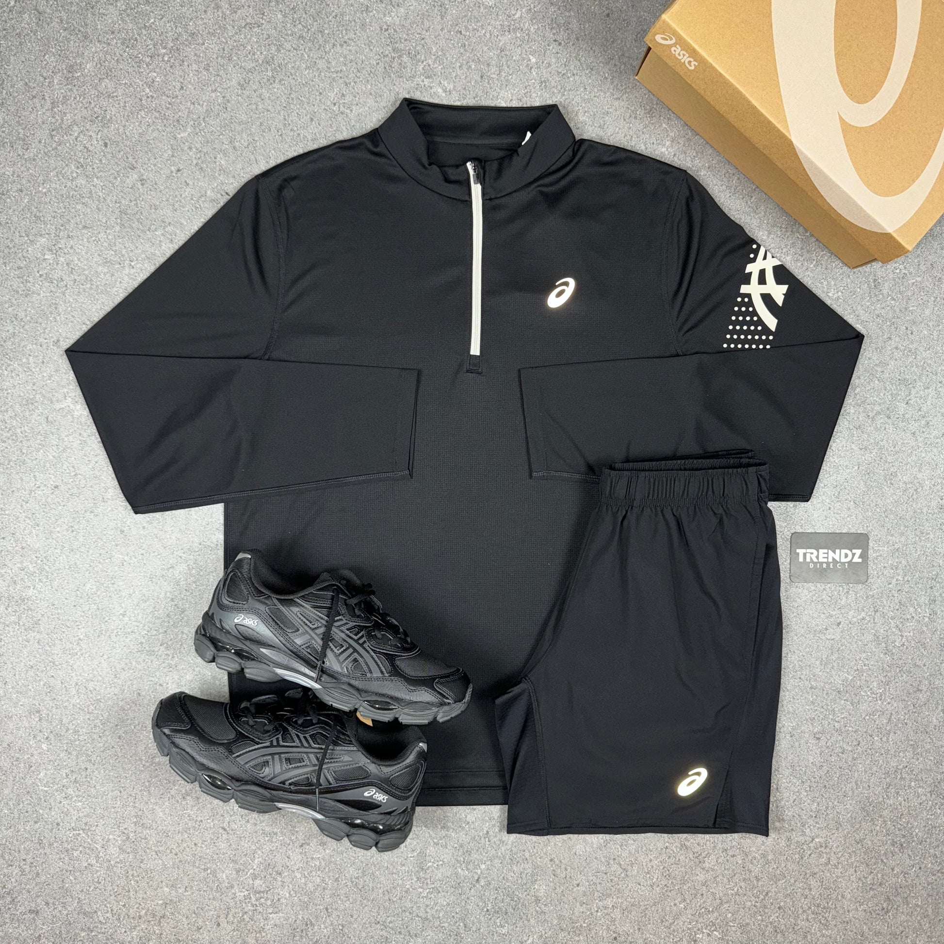 ASICS ICON HALF ZIP & PERFORMANCE SHORTS SET - BLACK