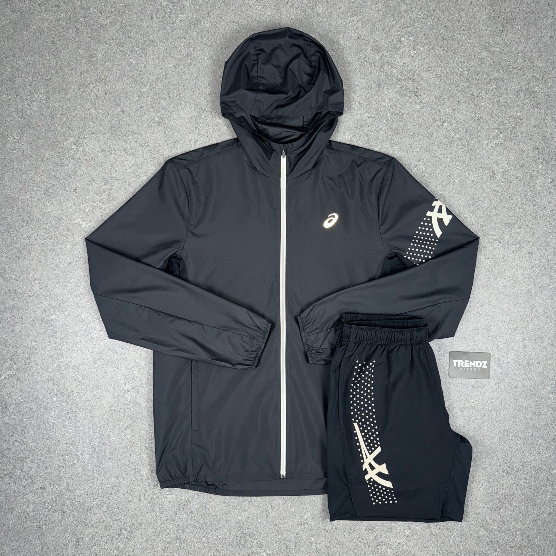 The ASICS Icon Windbreaker & Icon Shorts Set in black delivers the perfect balance of performance and style. The Icon Windbreaker is crafted from lightweight, water-repellent fabric to protect against wind and light rain, with reflective details for added visibility.
