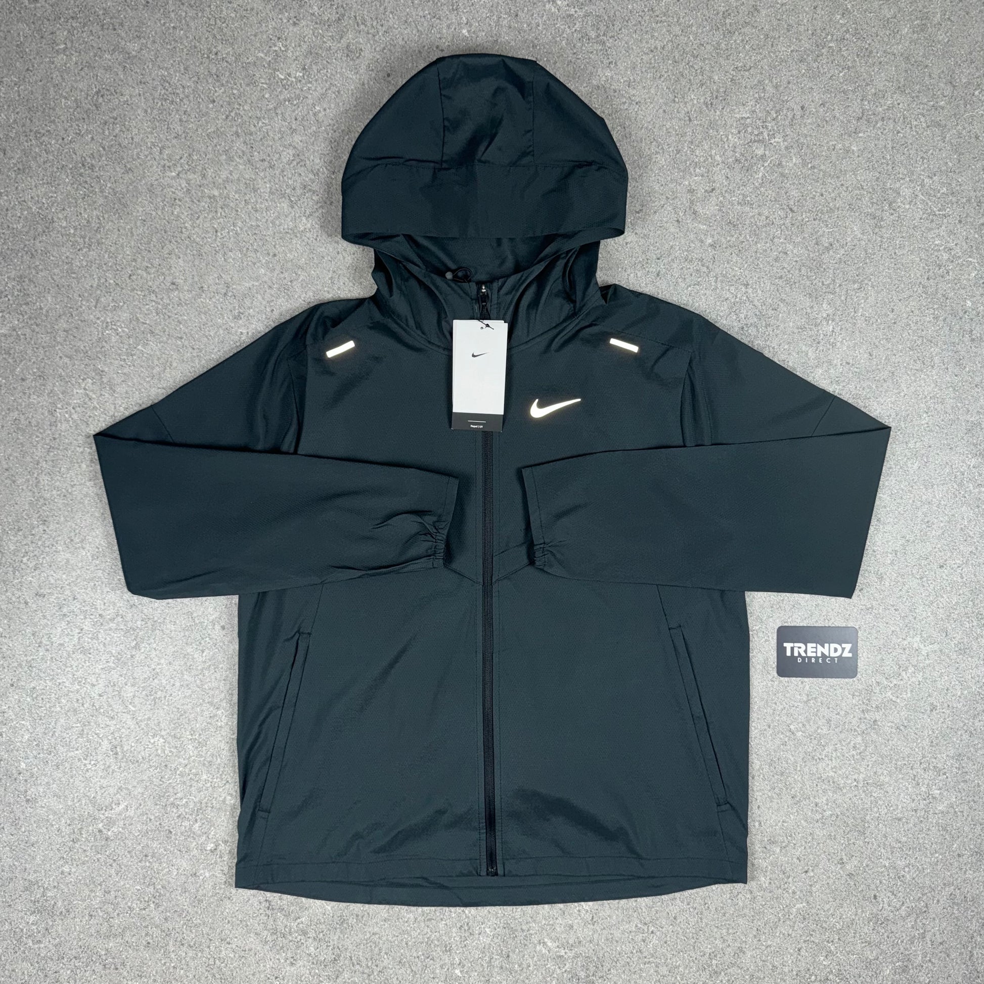Perfect for all weather conditions this packable windrunner jacket is presented in Black. This jacket is expertly crafted from a high-performance 2-way woven poly fabric, offering exceptional water-repellent properties. It features a full-length front zipper, elasticated trims, and an adjustable hood with convenient toggles. The inclusion of strategic mesh panels beneath the arms and a rear vent optimizes airflow for maximum comfort. Complementing its functionality are zippered pockets, adding practicality to the equation. As a final touch, the jacket is adorned with attention-grabbing reflective accents, including the iconic Swoosh logo on the chest.