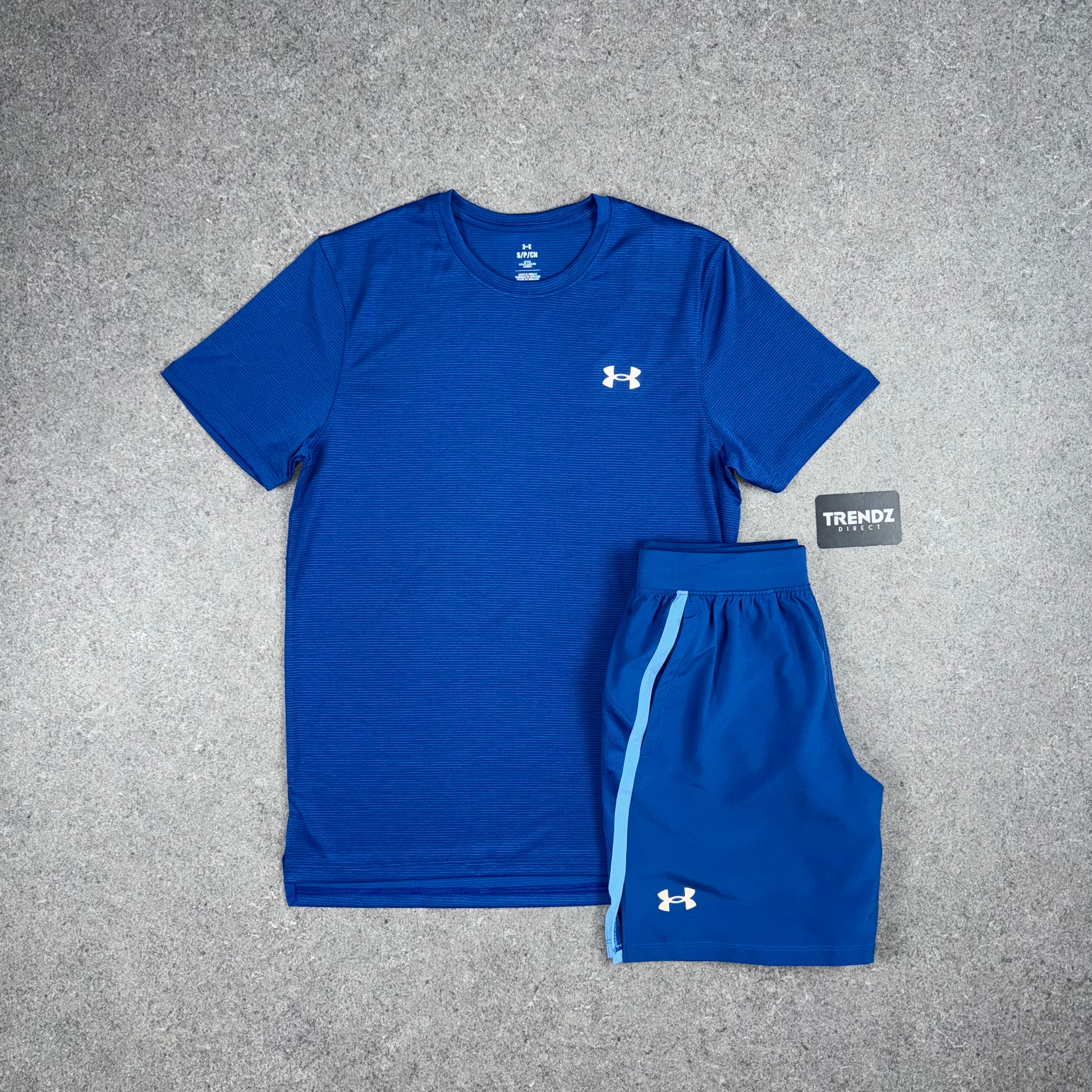 The Under Armour Tech Set in Blue is your go-to for everyday training and comfort. Featuring a lightweight, breathable Tech T-shirt and matching performance shorts, this set is designed to keep you cool, dry, and moving freely.